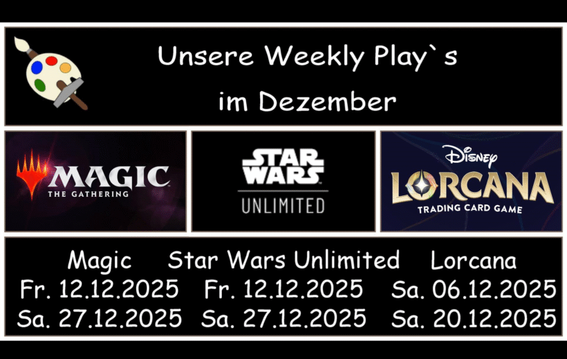 Matchday am 14.12.2025 Start 11.00 Uhr Teilnahmegebühr 15 € Anmeldung: im Laden, telefonisch, per Email oder über diesen Anmeldelink. Dieses Format erlaubt es den Spielern, Decks mitzubringen, die sie mit beliebigen Karten aus jedem Set gebaut haben. Die Termine für die nächsten Events findest du mit allen nötigen Infos in unserem Eventkalender. Tritt auch unserem Discord-Server bei […]