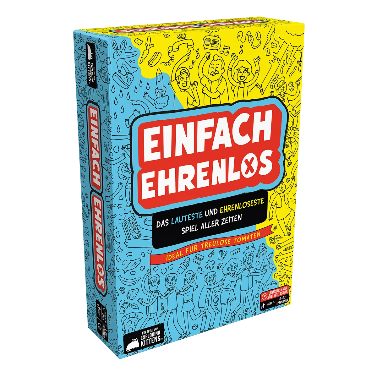Kinderleicht, oder? Aber! Ihr wisst nicht, wer in eurem Team ist, bis ihr eure Teamkarten aufdeckt. Schnell – findet euer Team und erfüllt die Aufgabe, bevor es die anderen tun, um zu gewinnen! Einfach Ehrenlos ist das lauteste und ehrenloseste Spiel aller Zeiten – denn die Teams ändern sich jede Runde …