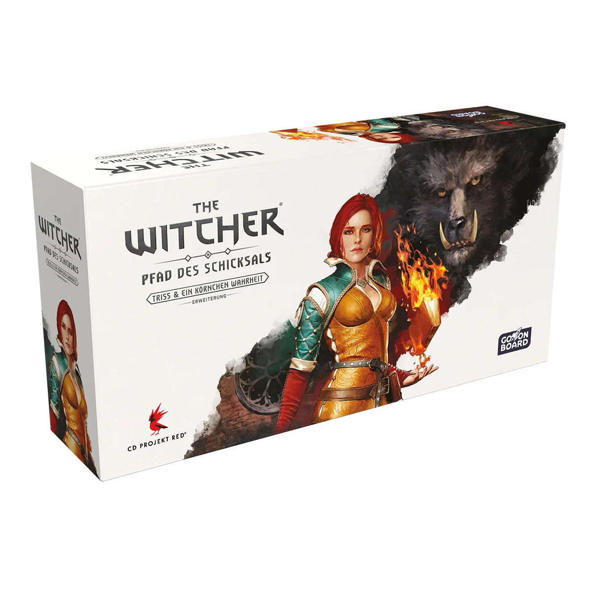 In der Erweiterung Triss & Ein Körnchen Wahrheit für das Kennerspiel The Witcher: Pfad des Schicksals schließt Triss sich euch an. Eine geschätzte Freundin von Geralt, Yennefer und Ciri: Triss ist eine mächtige Zauberin, die sich Elementarmagie zu eigen gemacht hat. Ihre Teleportattionsfähigkeiten werden in vetrackten Situationen nützlich sein. Von ihren einzigartigen Fähigkeiten wirst du verzaubert sein, denn sie können vor dem Ausspielen der Karten noch einmal alles ganz schön durcheinanderbringen.